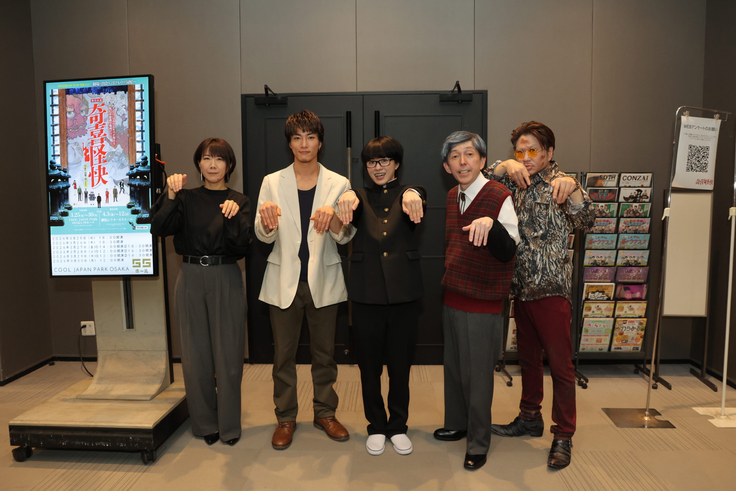 2026年3月25日(水)、関西から新たな演劇文化を発信するプロジェクト「関西演劇企画」の第2弾、舞台『奇喜怪快(ききかいかい)』大阪公演が25日に幕を開けた。小泉八雲の怪談をモチーフに、SNS社会の闇や現代人の孤独を描き出す本作。初日にプレスコールと囲み取材が行われた。