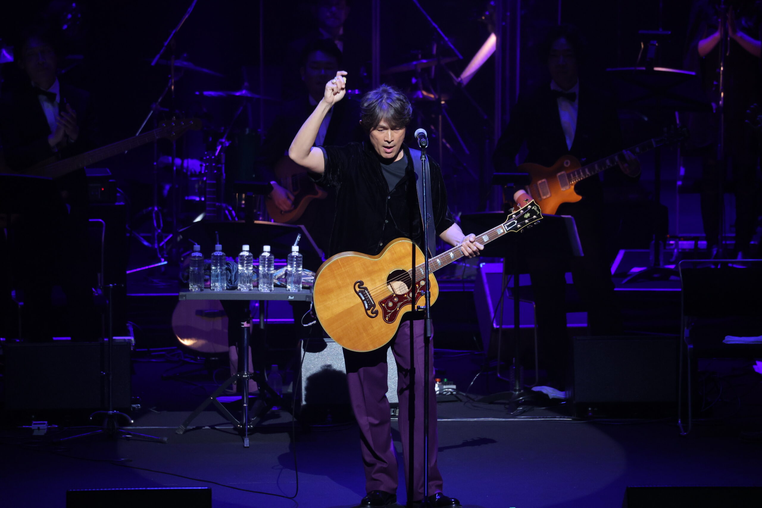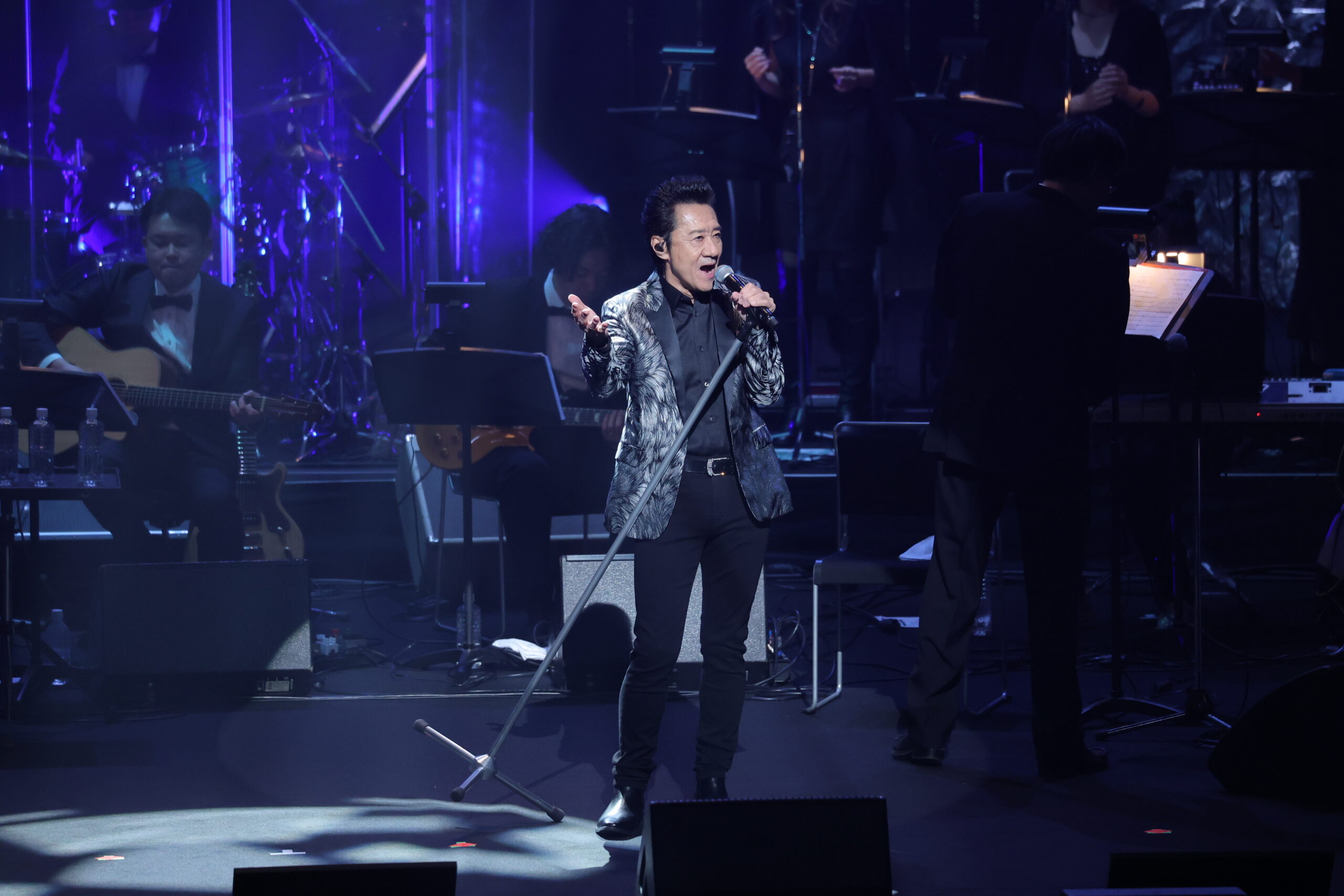 江口洋介が登場すると、客席からはドラマの役名にちなんだ「あんちゃーん!」という熱い声援が飛ぶ。オーケストラを背に「恋人も濡れる街角」を披露した際には、舞台上を縦横無尽に駆け巡り、サービス精神旺盛なステージングで観客を魅了した。さらにギターを手に自身のヒット曲「恋をした夜は」を奏で、会場のボルテージを最高潮まで引き上げた。