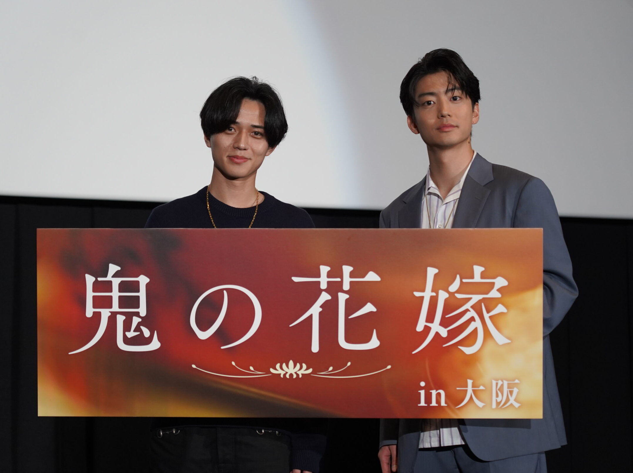 上映を終えたばかりの興奮冷めやらぬシアターに、割れんばかりの拍手と歓声が響き渡る。ステージに現れたのは、あやかしの頂点に立つ鬼の一族の次期当主・鬼龍院玲夜を演じた永瀬廉と、あやかし三大種族の一つ、妖狐・狐月瑤太役を演じた伊藤健太郎だ。